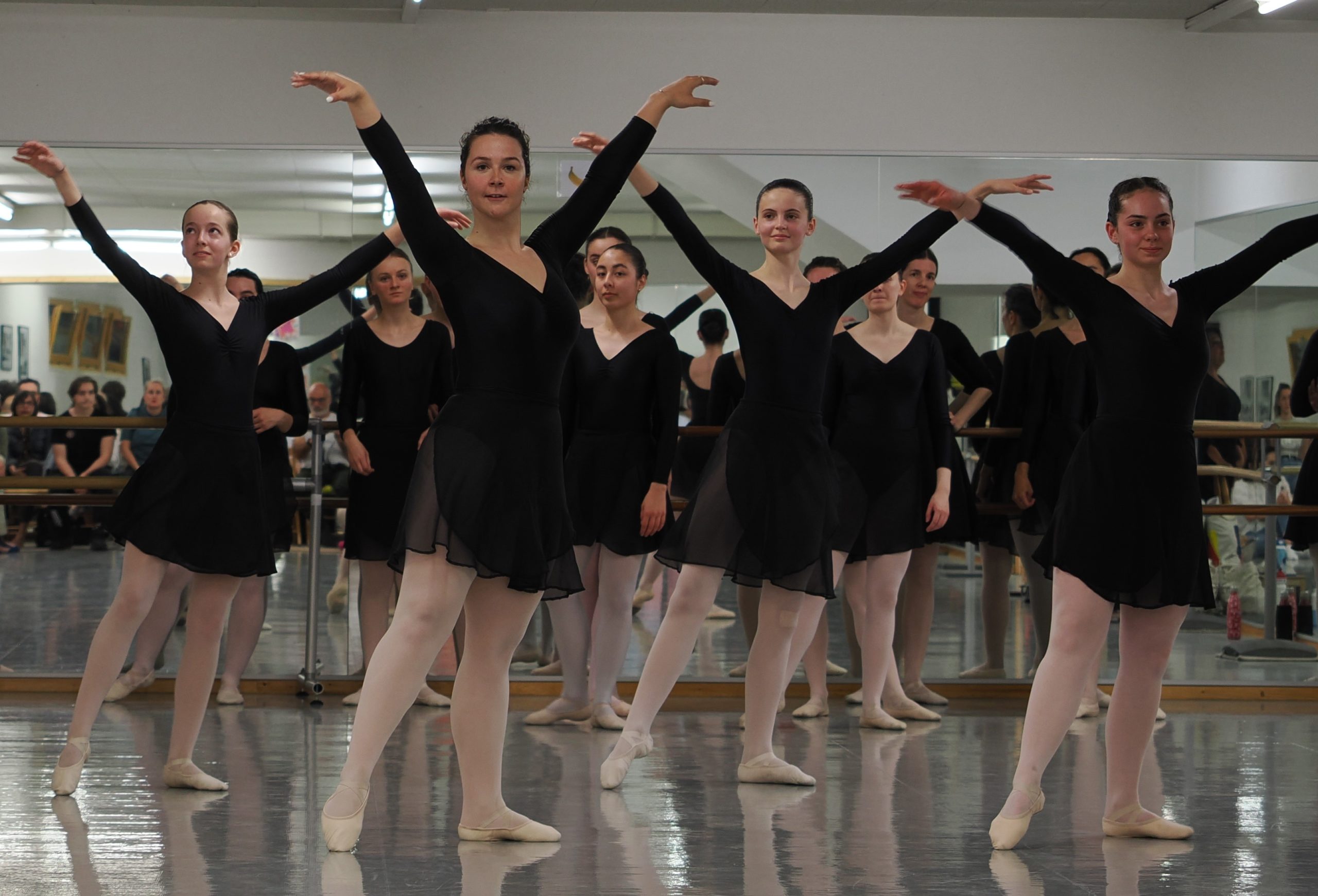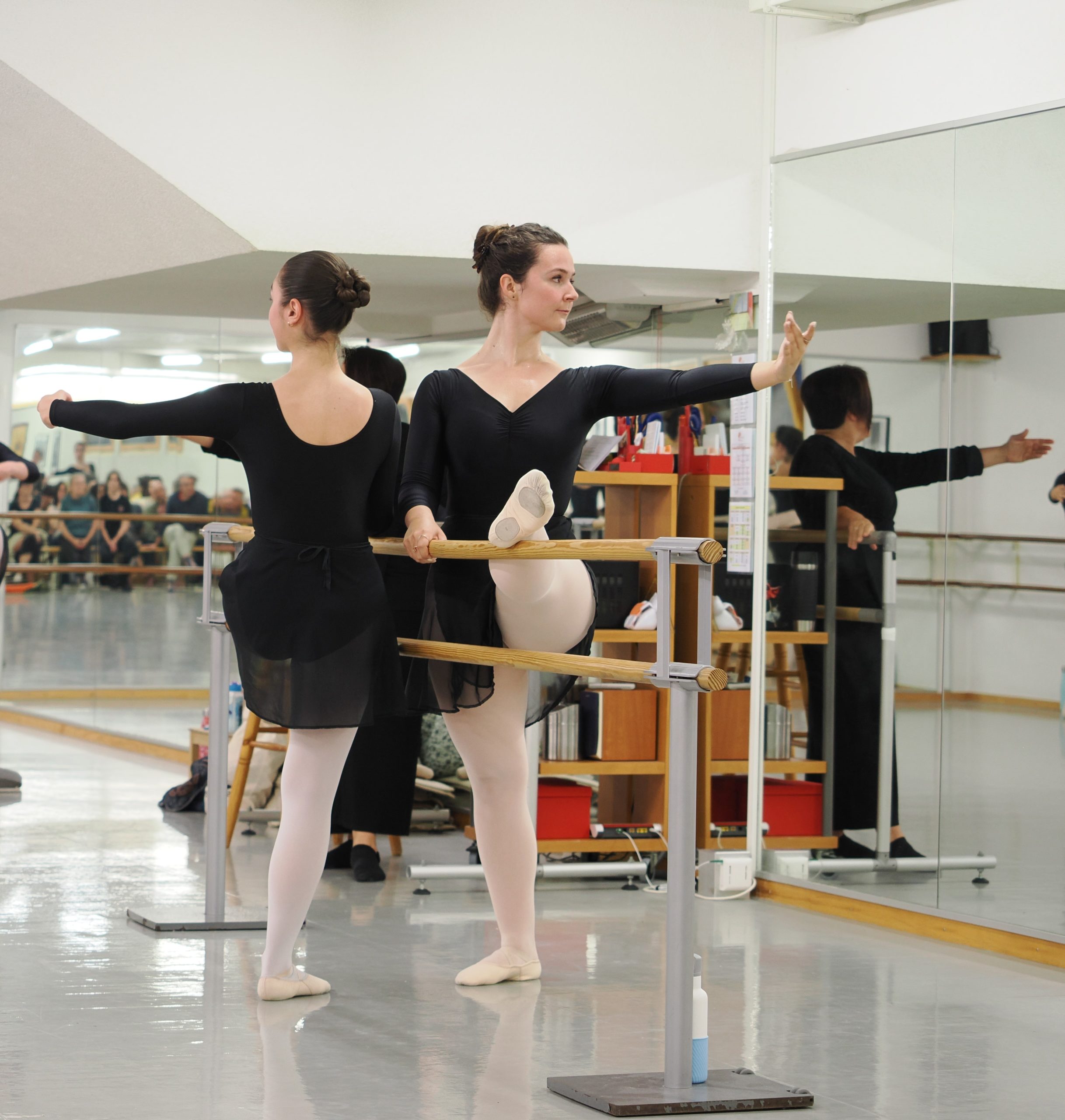 Le cours commence à la « barre » ce qui permet à l’élève d’avoir un soutien afin de pouvoir construire des bases solides. L’élève passe ensuite au « milieu » où il exécute dans l’espace des enchainements mettant en pratique ce qu’il a appris au cours de la barre. Puis, grâce à ce vocabulaire, il pourra s’exprimer dans des chorégraphies.